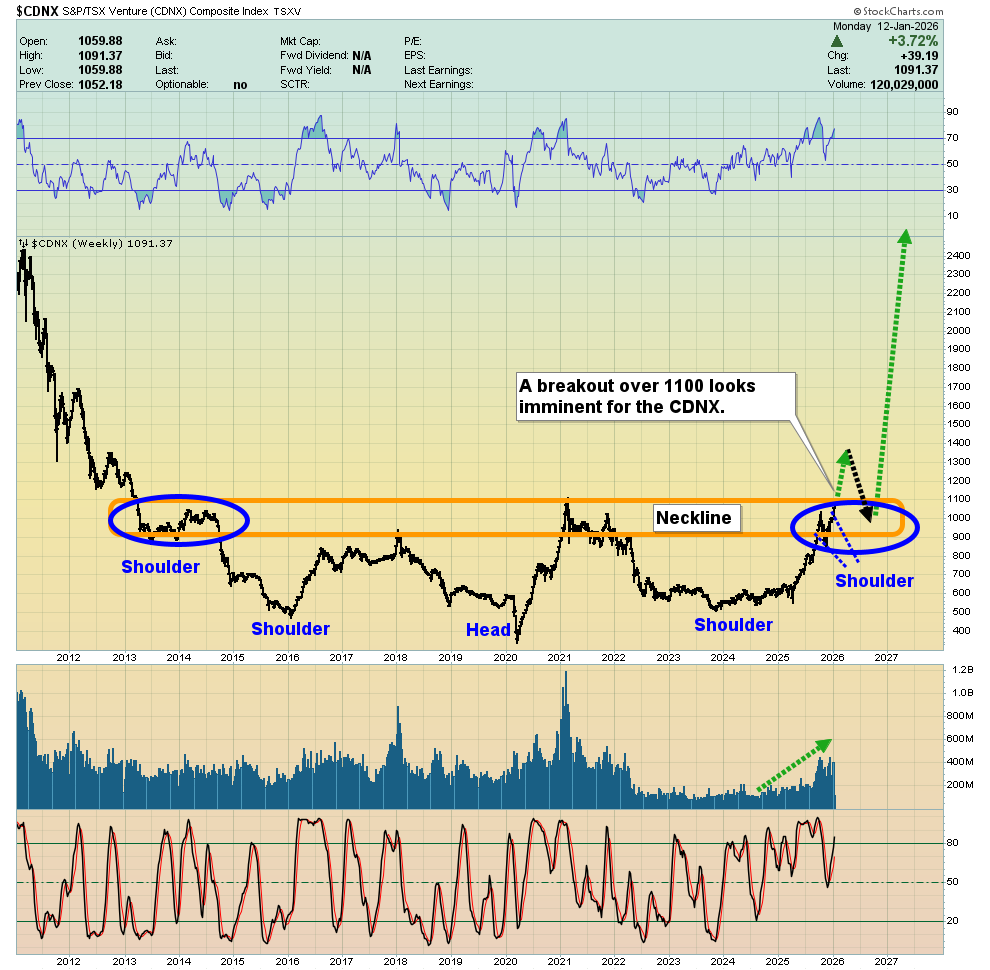 This spectacular CDNX daily chart which is a key indicator not just for the juniors, but for all the miners. - As good as this chart looks, it only tells one small part of the big bull era story for mining stocks and on that note…