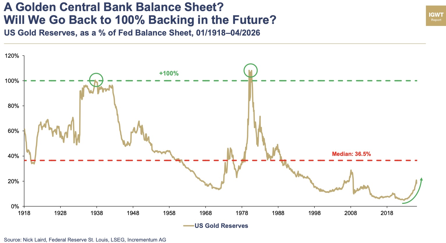 US Gold Reserves as a percent of The Fed’s 4/22/2026 Balance Sheet if backing again reached 100%: