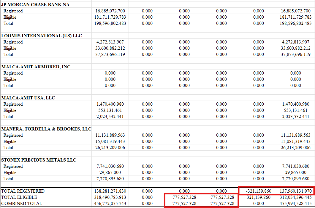 REGISTERED Silver Inventories Declined 321,139.86 oz to 137,960,131.97 oz