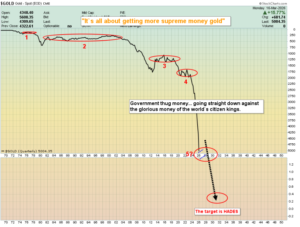.On this long-term US dollar versus gold chart, there is no rally.  Fiat looks to be enroute to a destination like Hades.