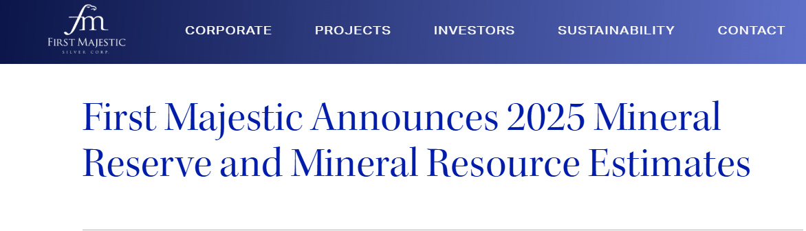 Vancouver, BC, Canada â First Majestic Silver Corp. (NYSE:AG) (TSX:AG) (FSE:FMV) (the âCompanyâ or âFirst Majesticâ) is pleased to announce its 2025 Mineral Reserve and Mineral Resource estimates for its four operating mines in Mexico and its Jerritt Canyon Gold Mine (âJerritt Canyonâ) in Nevada, U.S.A., with an effective date of December 31, 2025. Â These estimates demonstrate strong yearâoverâyear growth in the Companyâs Mineral Reserves and Mineral Resources.1
