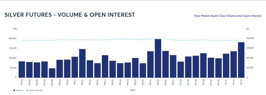 On December 29th, volume EXPLODED to 277,392 contracts – a massive increase of 87,922 contracts, or 440 MILLION OZ – more than half an entire year’s global silver supply.