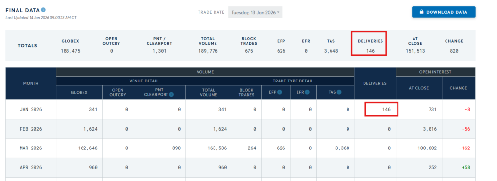 For historical perspective, Jan is already at 6x the level of deliveries COMEX experienced in Jan 2024, and we are not even halfway through the month!