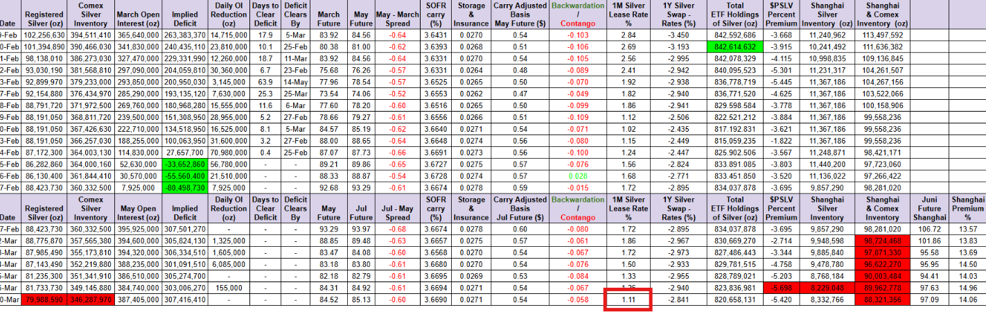 🚨1-Month Silver Lease Rate at to 1.11%