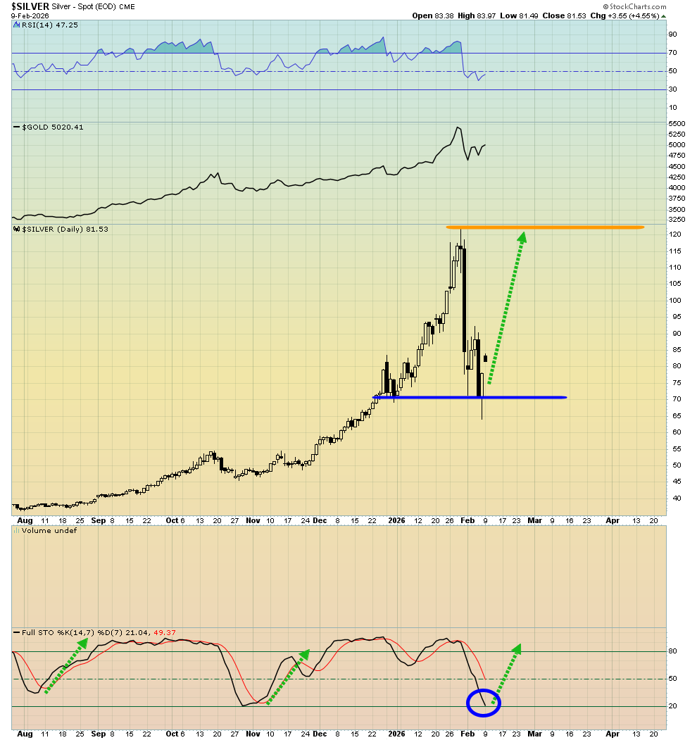 - Silver arrived at $70 support as gold arrived at $4400. I urged investors to base their buys on the stellar action of gold. Silver bugs who took that buy are looking very good this morning, with silver already back up to above $80… and it’s still not too late to join the party.
